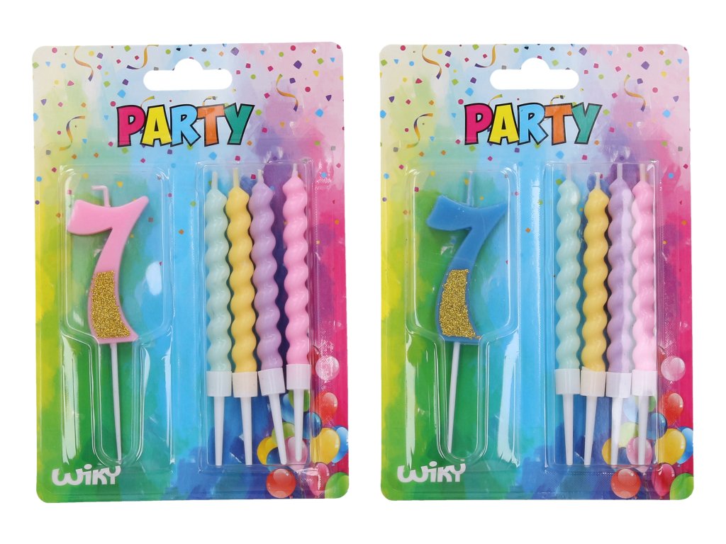 Párty sviečka číslo 7 + 4ks sviečok. 2 farebné varianty - modrá, ružováDodatočné parametre