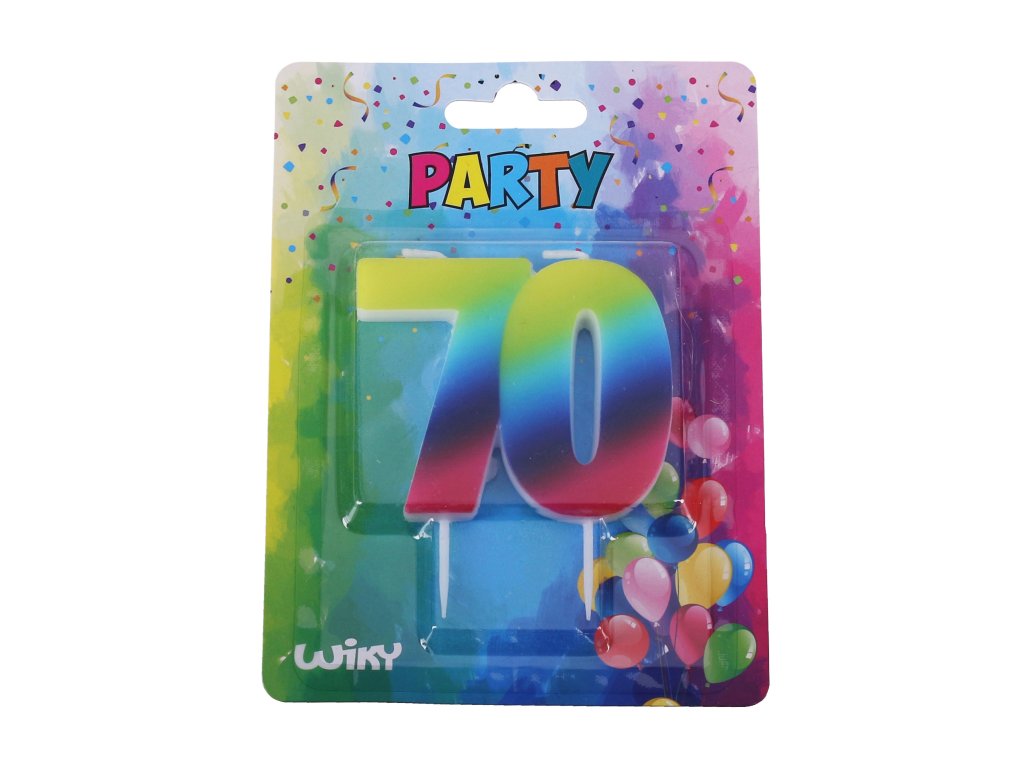 Narodeninová sviečka dúhová číslo 70 so stojanom z vosku pre pohodlné a pevné umiestnenie na tortu. Sviečky nie sú určené na konzumáciu. Dokonale pasuje k moderným farebným, ale aj klasickým tortám. Veselý a zároveň elegantný design.Dodatočné parametre