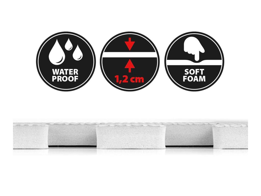 Podložka je ideálna na použitie v interiéri - je odolná a ľahko sa čistí. Je pružná a bezpečná pre deti - poskytuje mäkký povrch na hranie a zároveň ich izoluje od chladu alebo tvrdosti podlahy.