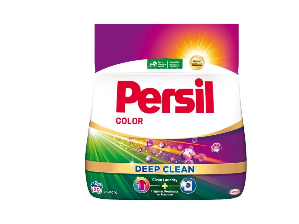Persil prací prášok Color vám pomôže docieliť dokonale čistú bielizeň a žiarivosť farieb vášho oblečenia pri každom praní. Prací prášok na farebnú bielizeň pomáha zachovať jas farieb, zároveň poskytuje úžasný čistiaci výkon a dodáva práčke hygienickú sviežosť vďaka novému zloženiu. Technológia Deep Clean účinne odstraňuje nepríjemné pachy a poskytuje vašej bielizni dlhotrvajúcu sviežosť.