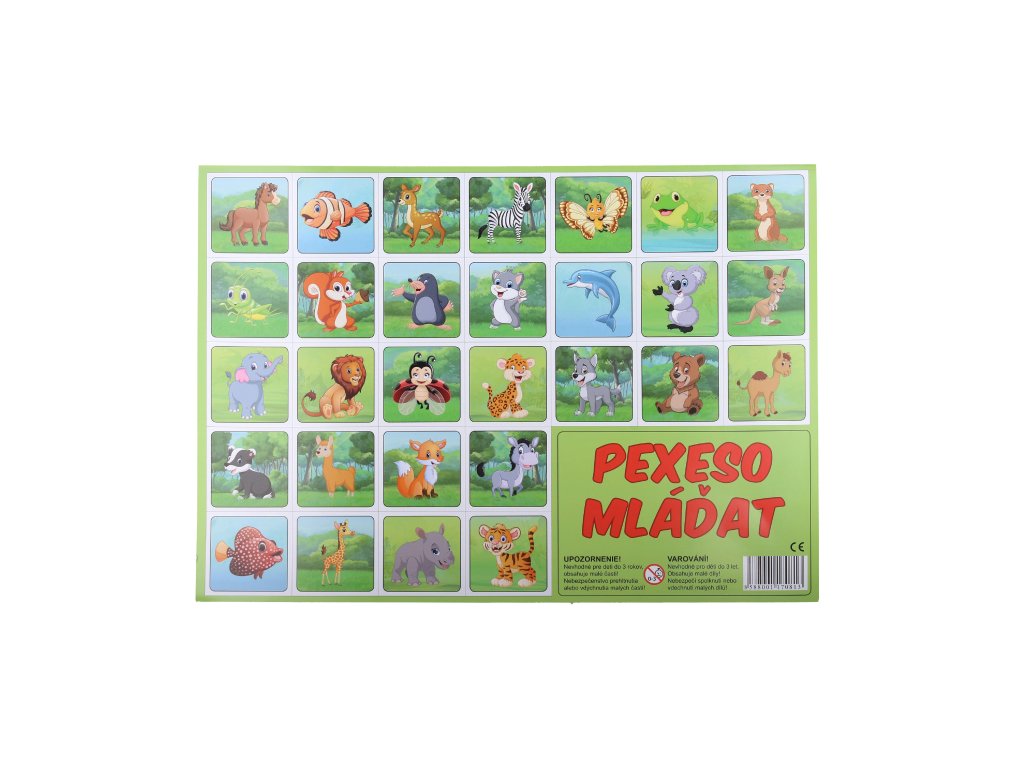Pexeso – spoločenská hra, pri ktorej si deti zábavnou formou hry trénujú svoju pamäť. Hra sa skladá z 32 obrázkových dvojíc s motívom mláďat. Odporúčaný vek: od 3 rokovDodatočné parametre