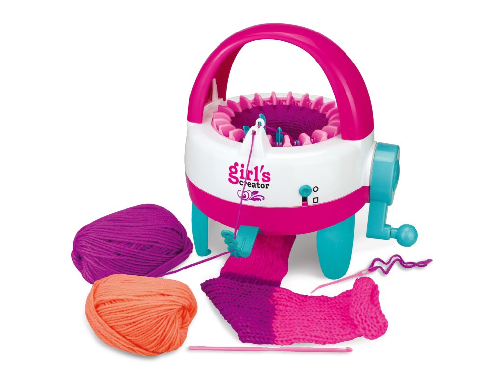 ?Pletací stroj na kľučku Girl's Creator - nebaví Ťa pletenie, ale chceš mať štýlové doplnky v tvojich farbách? S touto popletkou hravo vyrobíš šál, čiapku, ponožky, návleky, nátepníky alebo napríklad pletenú kabelku. Stačí len nachystať vlnu a otáčať kľukou. Šírka stavu: 22 cm Odporúčaný vek: od 5 rokovDodatočné parametre