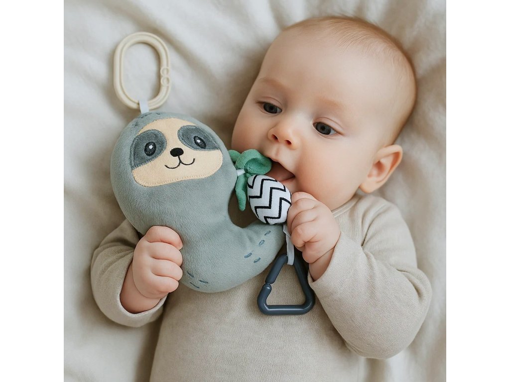 Predstavujeme hračku z kolekcie Sloth českej značky New Baby, ktorá vaše dieťatko zabaví na cestách aj kdekoľvek inde. Táto praktická hračka kombinuje funkcie vibrácií, hryzátka a hrkálky a poskytuje tak dokonalú zábavu pre najmenších.