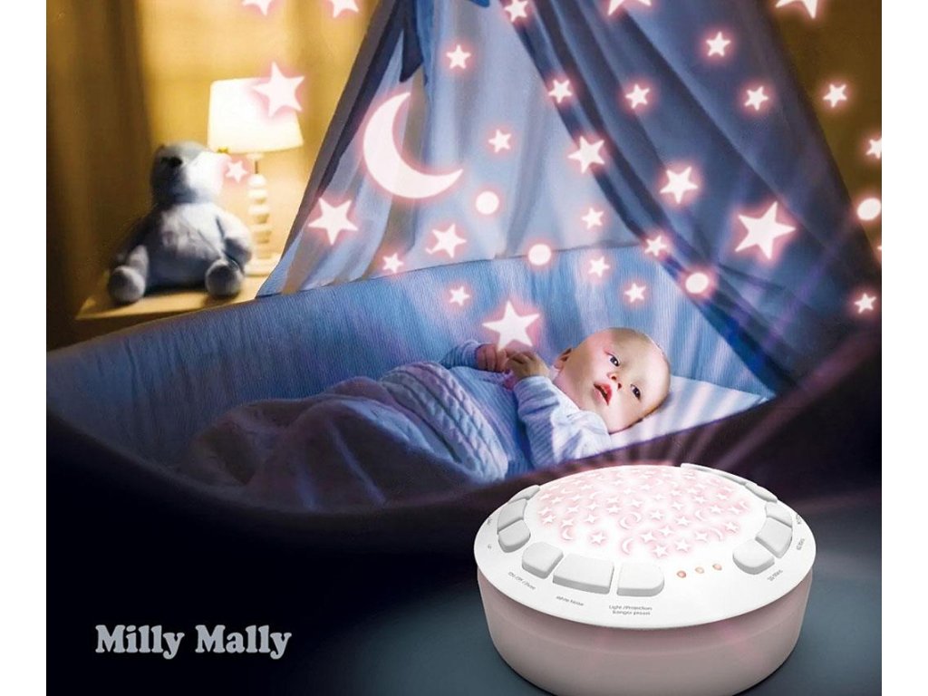 Môžete nastaviť vhodnú dobu trvania: 30, 60, 90 minút. K dispozícii je 5 úrovní hlasitosti. Skvelým doplnkom jeho funkcie je 5 druhov bieleho šumu, ktorý má na batoľa obzvlášť upokojujúci účinok umožňujúci mu upokojiť sa a rýchlejšie zaspať. S touto hračkou budete počuť jemné zvuky: zurčenie vody so zvukmi vtákov, tlkot srdca, kvapkanie vody, spev vtákov alebo padajúci dážď.