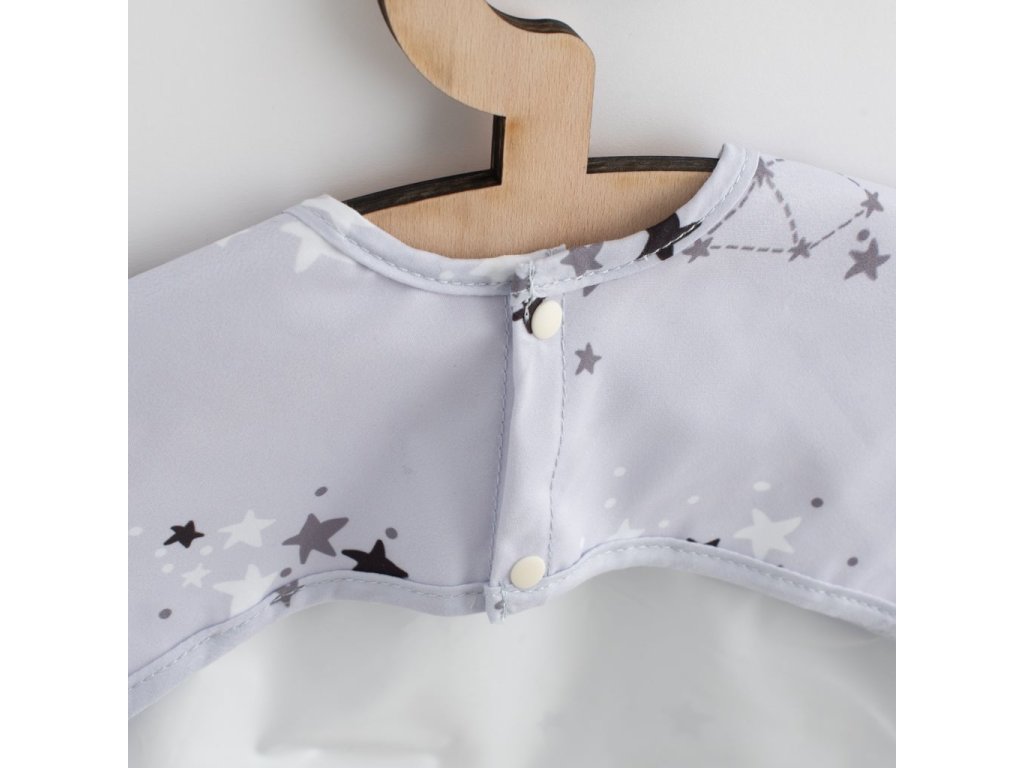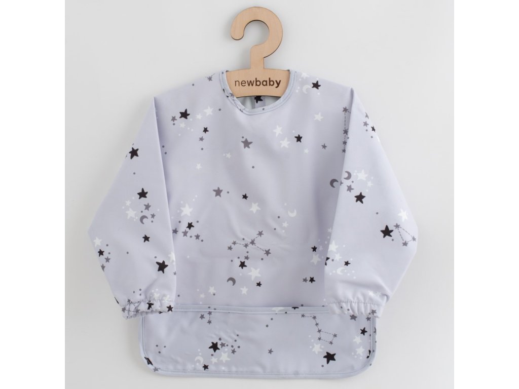 Detský podbradník-zástera s dlhým rukávom New Baby účinne ochráni oblečenie vášho dieťaťa pred ušpinením pri jedle a hraní. Vyrobené z ľahkého a mäkkého materiálu. Podbradník má pohodlné zapínanie na 2 cvočky a praktické vrecko. Podbradník je ušitý z dvoch vrstiev materiálov. Spodná vrstva je z nepremokavého materiálu. Pri zašpinení je možné podbradník utrieť vlhkou handričkou, alebo prať v práčke.Zásteru vďaka dlhému rukávu je možné využiť aj na maľovanie.