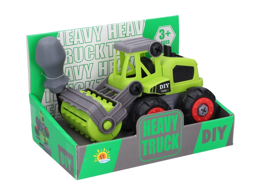 Poľnohospodársky stroj skrutkovací. Rozmery 15,5x9x10 cm. Voľné kolesá. Obsahuje poľnohospodársky stroj, skrutkovač. 2 varianty - valec, nakladač.Dodatočné parametre