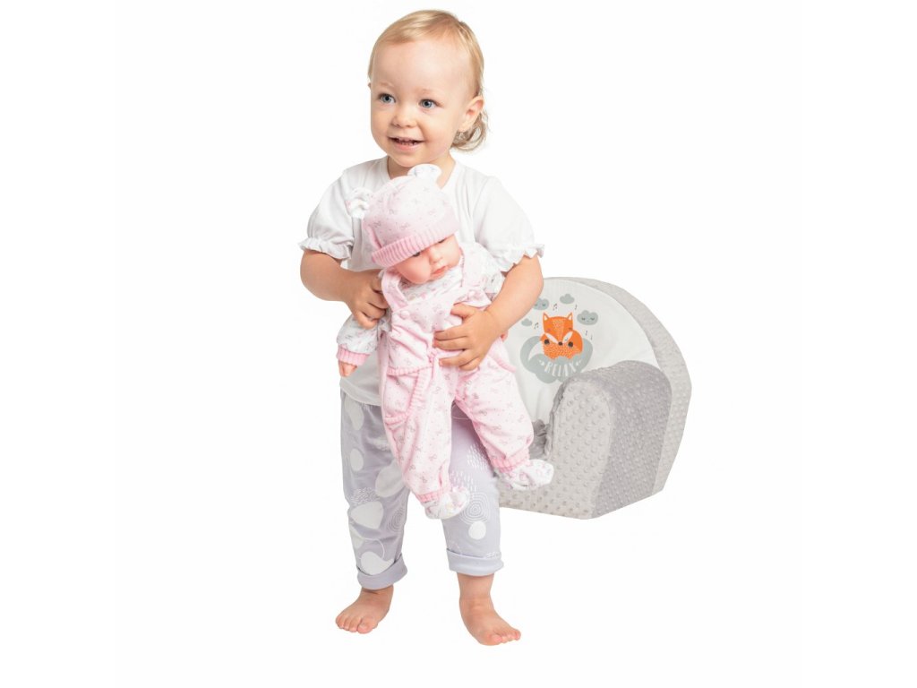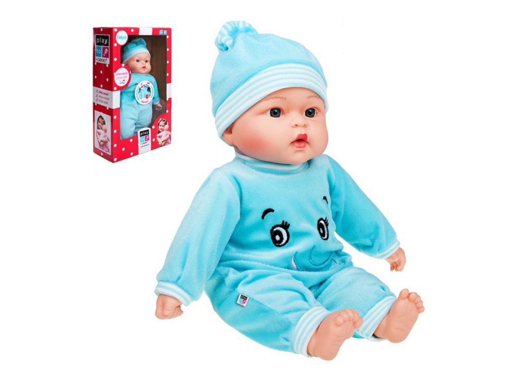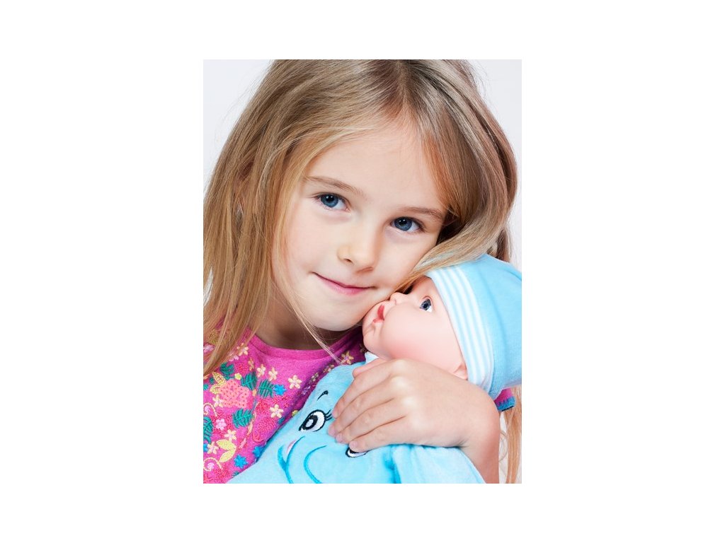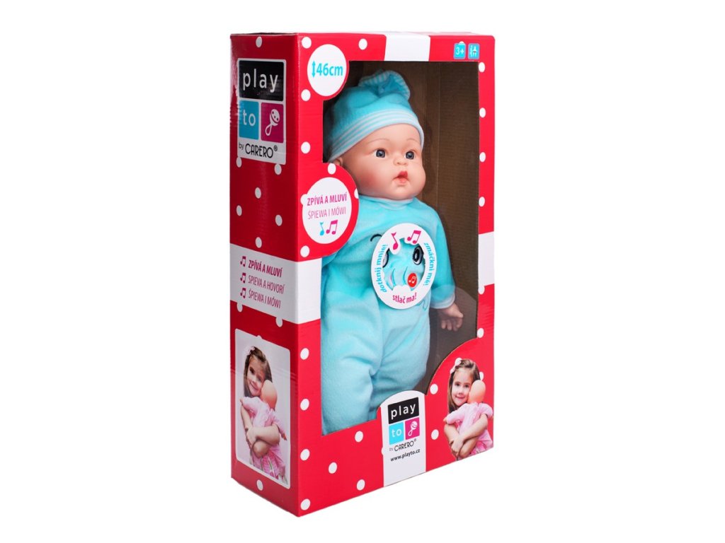 Detská bábika PlayTo. Skvelá hračka pre každé dievčatko. Hlava, ruky a nohy sú vyrobené z gumy, telíčko potom z mäkkého materiálu, vďaka čomu sa môže dieťa k bábike krásne pritúliť. Bábika má celú sadu oblečenia, vrátane topánočiek a čiapočky. Oblečenie je možné zložiť a vyprať. Bábika má krásnu, usmievavú tvár, farebné oči a riasy ako u živého bábätka. Dĺžka bábiky 46 cm. Bábika má poľský modul a hovorí tieto poľské vety: mamusiu, tatusiu, tatusiu weź mnie na rączki, mamusiu kocham cię a iné. Bábika spieva tieto poľské pesničky: Jadą jadą misie, Kosi kosi łapci, Miała baba koguta, Tá Dorotka, My jesteśmy krasnoludki.Dodatočné parametre