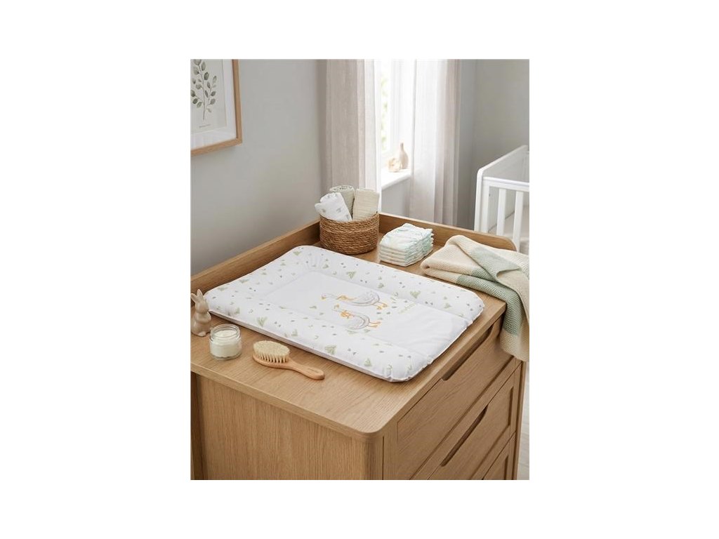 Praktická mäkká prebaľovacia podložka New Baby Husičky z nepremokavého, plastového materiálu v príjemných pastelových farbách. Roztomilý a aktuálny detský vzor s husičkami určite zaujme pozornosť vášho bábätka.
