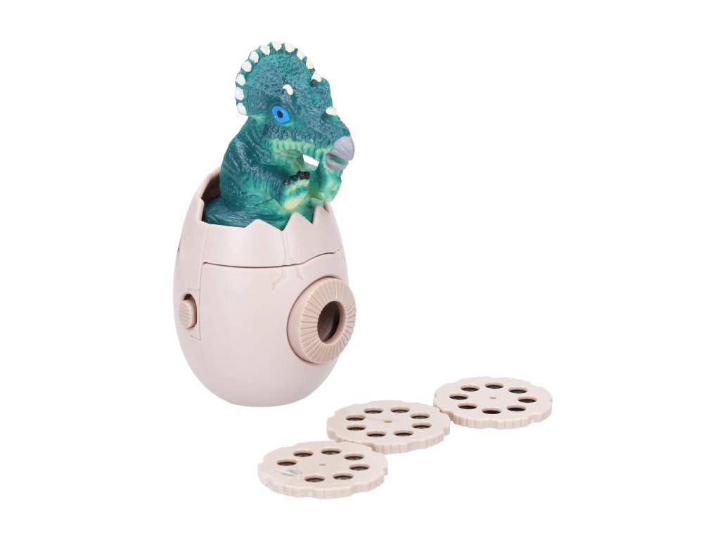 Projektor s dinosaure. Rozmery 5x5x10 cm. Súčasťou projektor, 3 premietacie kolieska. 3xAG13 batérie súčasťou. 3 varianty.Dodatočné parametre