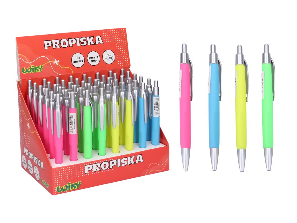 Propiska guličkový mechanizmus. 4 rôzne farby: ružová, zelená, žltá a modrá. 48 kusov v display boxe.Dodatočné parametre