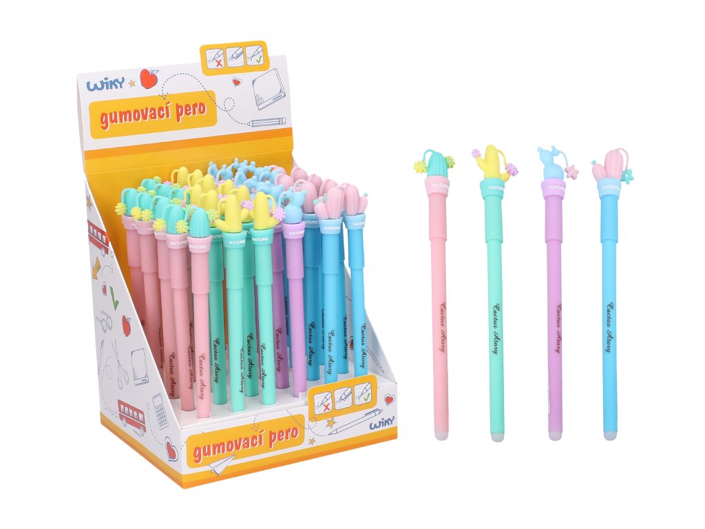 Propiska gumovací vzor Kaktus. Hrúbka hrotu - 0.5 mm, jemné písanie. 36 kusov v display boxe. 4 farby - modrá, fialová, zelená a ružová.Dodatočné parametre