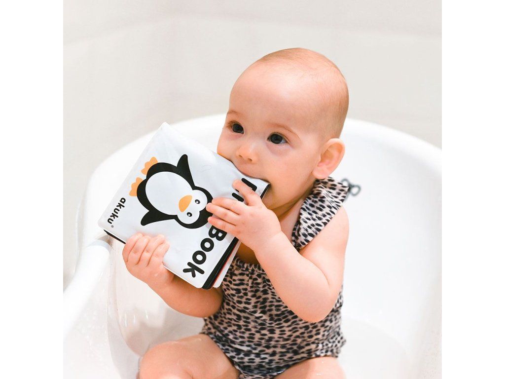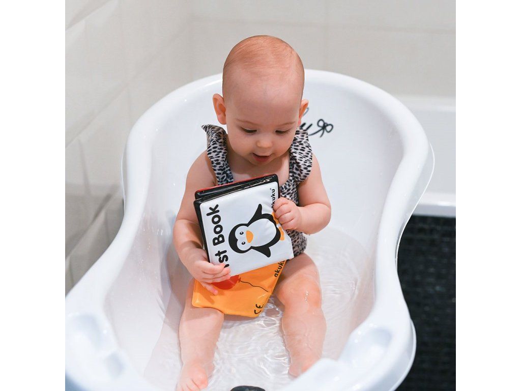 Dieťa sa učí rozpoznávať jednotlivé zvieratká, tvary alebo farby a tým rozvíja všetky svoje zmysly a predstavivosť. Knižka podporuje rozvoj manuálnych a motorických zručností a spestruje čas strávený vo vani. Vnútri je umiestnené pískatko, ktoré ešte viac priťahuje pozornosť dieťaťa.