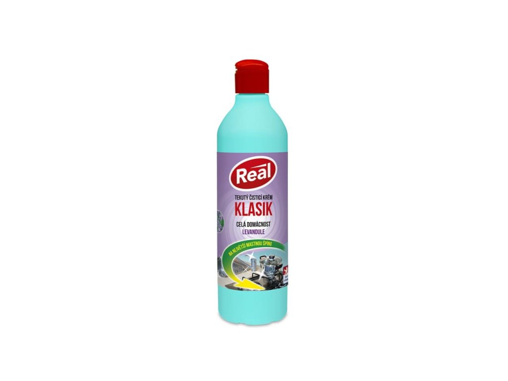 Čistiaci prostriedok Real Klasik je spojením čistiaceho prášku a jemného krému . Je univerzálna a využitie nájde v celej domácnosti. Je ideálny do kúpeľne, kuchyne aj dielne na tvrdé umývateľné povrchy. Ľahko umyje aj silné znečistenie, zaschnutú špinu a pripáleniny. Vďaka jeho vysokej účinnosti vám ušetrí čas aj sily. Má jemnú levanduľovú vôňu, ktorá nedráždi. Prostriedok nie je vhodný na lakované a plastické povrchy.