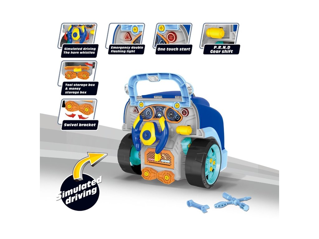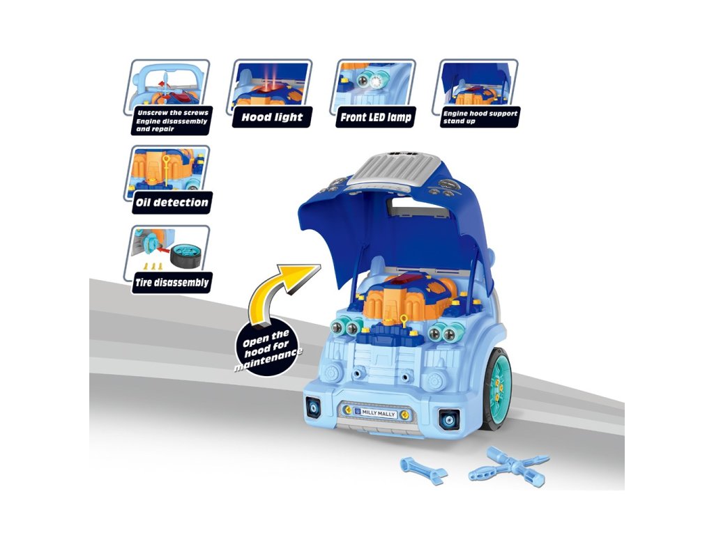 Hračka obsahuje svetelné a zvukové efekty, ktoré dodávajú hernému zážitku vzrušenie a realizmus. Vďaka sade náradia a pohyblivým častiam môžu deti opravovať autá, meniť pneumatiky, uťahovať skrutky a učiť sa základy mechaniky prostredníctvom akcie. Rozvíja manuálne zručnosti a logické myslenie a podporuje učenie hrou.