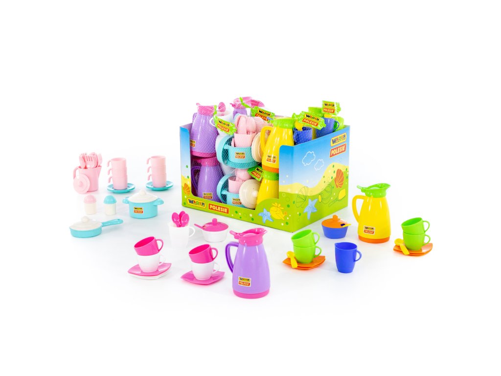 Každá gazdinka by mala mať svoj riad, aby mohla pripravovať skvelé jedlo aj pitie pre svojich hostí! Ktorý z týchto sád plastového riadu si vyberieš? Varianty: Ružovo-biely set s fialovou kanvičkou: kanvička, 4 hrnčeky, 4 podšálky, 4 lyžičky, cukornička, mliekovka Farebný set s kanvičkou: kanvička, 4 hrnčeky, 4 podšálky, 4 lyžičky, cukornička, mliekovka , 6 tanierikov, 6 lyžičiek, 6 vidličiek a nožíkov, soľnička, korenička, hrniec s pokrievkou, panvička Odporúčaný vek: oDodatočné parametre