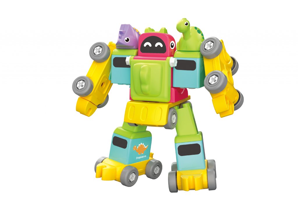 Robot dino vláčik skrutkovacie. Balenie obsahuje rozloženú mašinku so 4 vagónmi, návod na zloženie vláčika aj robota a skrutkovač. Je možné zložiť vláčik so 4 vagónikmi, alebo jedného robota.Dodatočné parametre