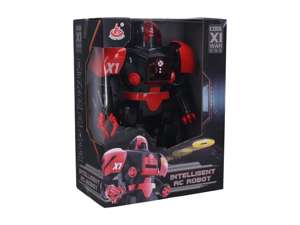 Robot strieľajúce disky RC na diaľkové ovládanie. Rozmery 21x12,1x29,5 cm. Infračervený port. Svetelné a zvukové efekty. Funkcia - strieľanie diskov, programovanie, demo režim, chôdza, tanec, hudba, nastavenie hlasitosti. 4xAA do robota, 2xAA do ovládača nie sú súčasťou. Prepínač ON/OFF na zadnej strane robota.Dodatočné parametre