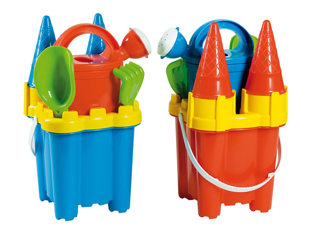 "Skvelá sada hračiek na piesok, nájdeš v nej všetko čo na piesku budeš potrebovať. Sada obsahuje: kýblik, konývku, hrabličky, lopatku, bábovku. Výška vedierka cca 29 cm."Dodatočné parametre