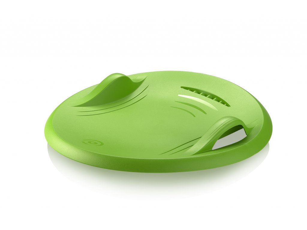 Sánkovací tanier Supernova zelená. Priemer 60 cm. Váha 0,68 kg. Nosnosť 50 kg. Prevádzková teplota -20 až 70 °C. Zatáčanie vďaka nakloneniu do strany, brzdeniu zaklonením. Rukoväte integrované do obvodu taniera. Protišmyková úprava povrchu.Dodatočné parametre