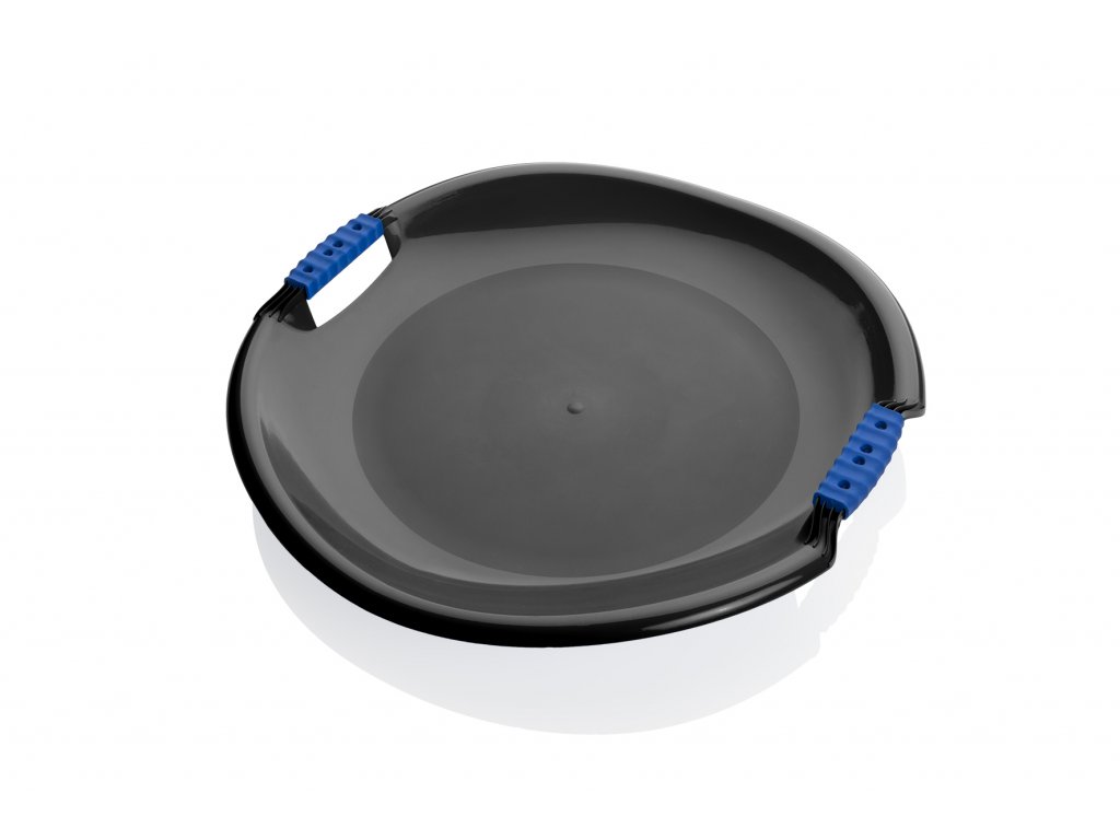Sánkovací tanier Tornado Super čierna. Priemer 54 cm, výška 8 cm. Pre deti i dospelých, riešenie umožňujúce rotáciu počas jazdy praktické, skladné, odolné, protišmyková úprava držadiel. Váha 0,5 kg. Nosnosť 50 kg. Prevádzková teplota -25 až 50 °C.Dodatočné parametre