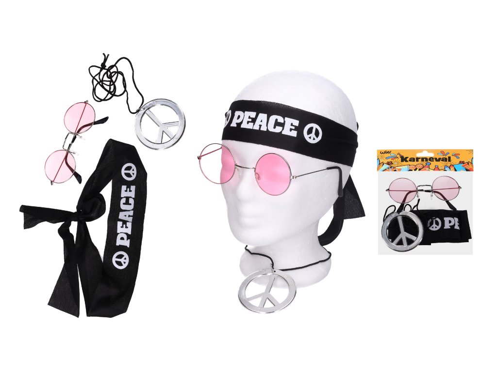Karnevalový set - hippies. Obsahuje: okuliare, šatka, prívesokDodatočné parametre