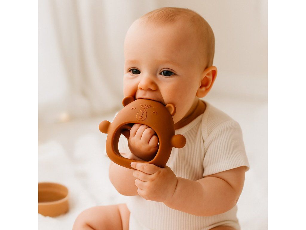 Hryzátko z exkluzívneho radu New Baby Trendy spája štýl, funkčnosť a bezpečnosť. Jemná karamelová farba v minimalistickom prevedení dopĺňa praktický dizajn, vďaka ktorému sa hryzátko ľahko zmestí do malých detských rúk. Ideálny pomocník pri prerezávaní zúbkov aj ako štýlový doplnok pre moderných rodičov.