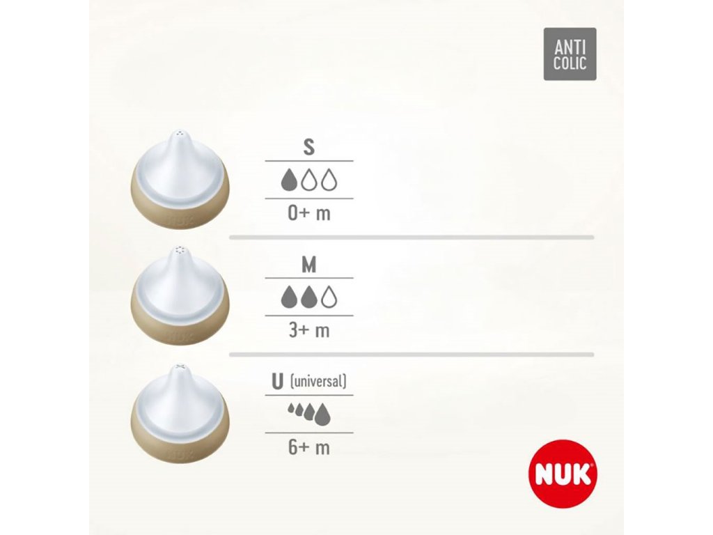 - neobmedzený počet kombinácií – možno kombinovať so všetkým príslušenstvom odsávačiek materského mlieka NUK Perfect Match a NUK Soft&Easy-nekvapkajúce-vďaka viečku fľašu netečie a cumlík je chránený pred znečistením. Dojčenské fľaše sú v súlade s európskou normou EN14350.
