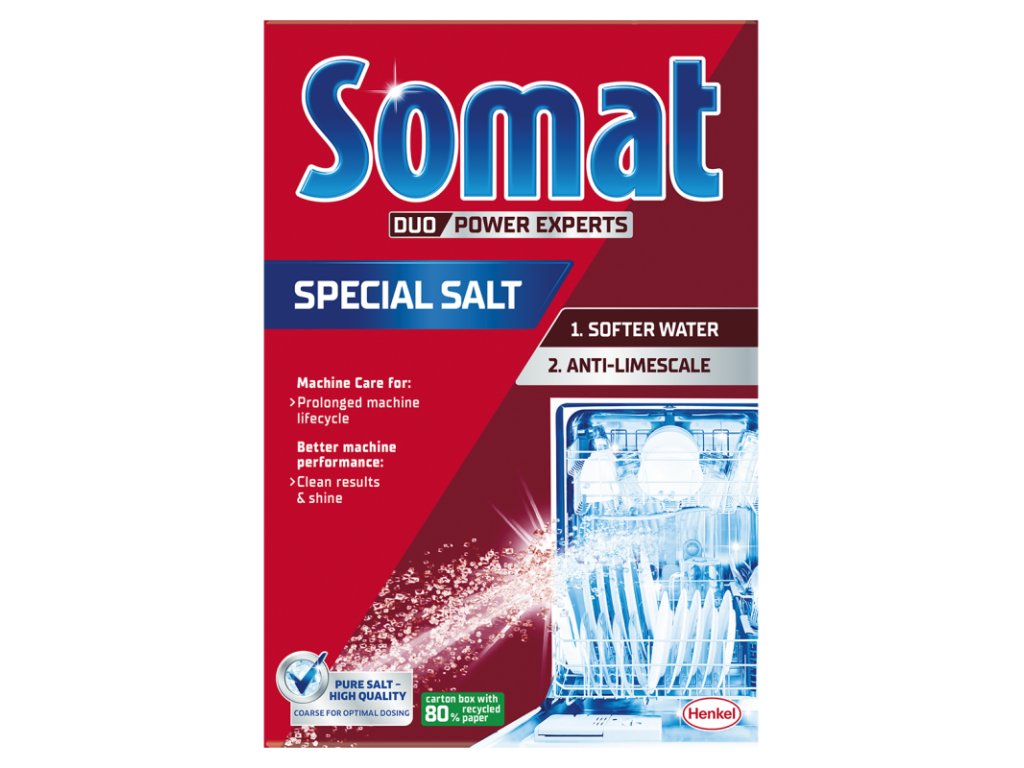 Aktivuje ióny, ktoré viažu vápno vo vode a zabraňuje ich usadzovaniu a vytváraniu vodného kameňa, mala by byť používaná ako doplnok k štandardným čistiacim prostriedkom do umývačky riadu.