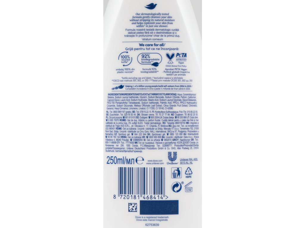 Dove sprchový gél hydrating care s vôňou aloe vera a brezovej vody povzbudí vaše zmysly a zároveň dodá pokožke hydratáciu a výživu. Povzbudzujúci sprchový gél pomáha pokožku osviežiť a receptúra Moisture Renew Blend napomáha obnoveniu prirodzenej miery hydratácie. Sprchový gél hydrating care bez obsahu sulfátov je šetrný voči mikrobiomu pokožky. Naštartujte svoj deň s naším hydratačným sprchovacím gélom, v ktorom sa spája všetka starostlivosť od značky Dove!