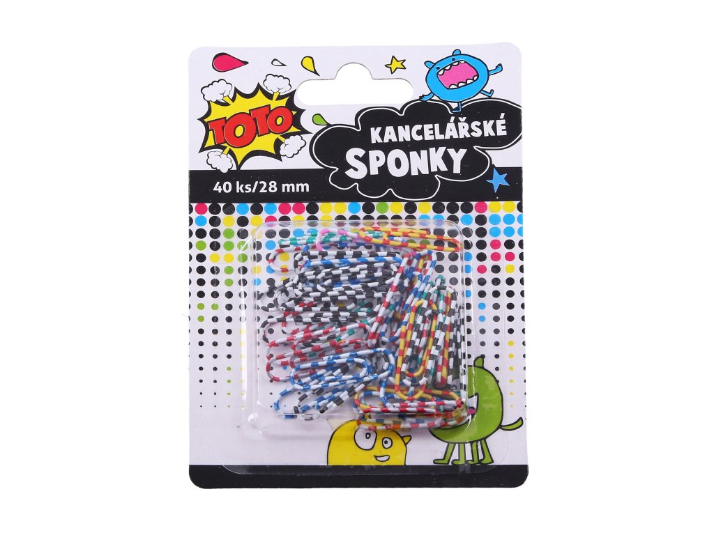 Kancelárska sponka je drobná pomôcka praktické denné potreby, slúži na rýchlu a jednoduchú organizáciu a triedenie dokumentov. Spony sú vyrobené z pevného a odolného drôtu obaleného farebným obalom, ktorý drží dokumenty pevne pri sebe. Dĺžka: 28 mm Počet kusov: 40Dodatočné parametre