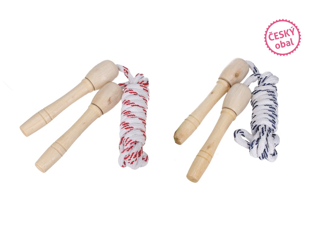 Švihadlo. Dĺžka 220 cm. Drevené držadlo ergonomické. 2 varianty - modro-biele, červeno-biele.Dodatočné parametre