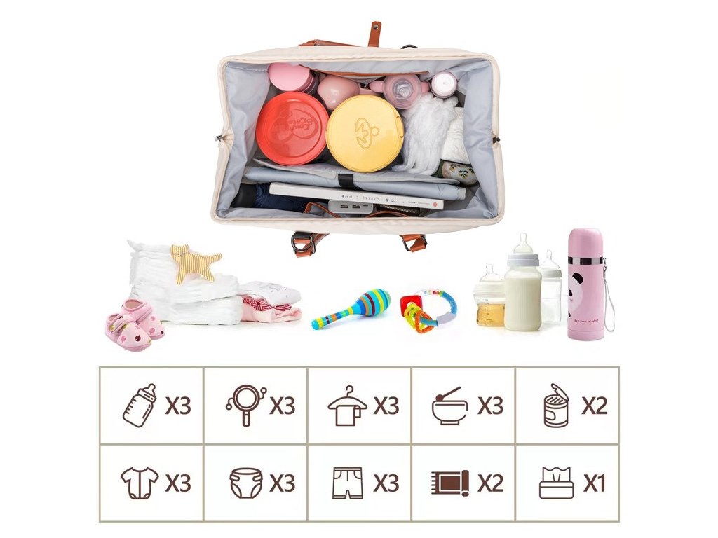 Už nemusíte nosiť niekoľko tašiek alebo batohov! Mommy Bag pojme všetko, čo potrebujete vy aj vaše bábätko: plienky, oblečenie, fľaštičky, desiaty, deky, hračky aj kozmetiku.