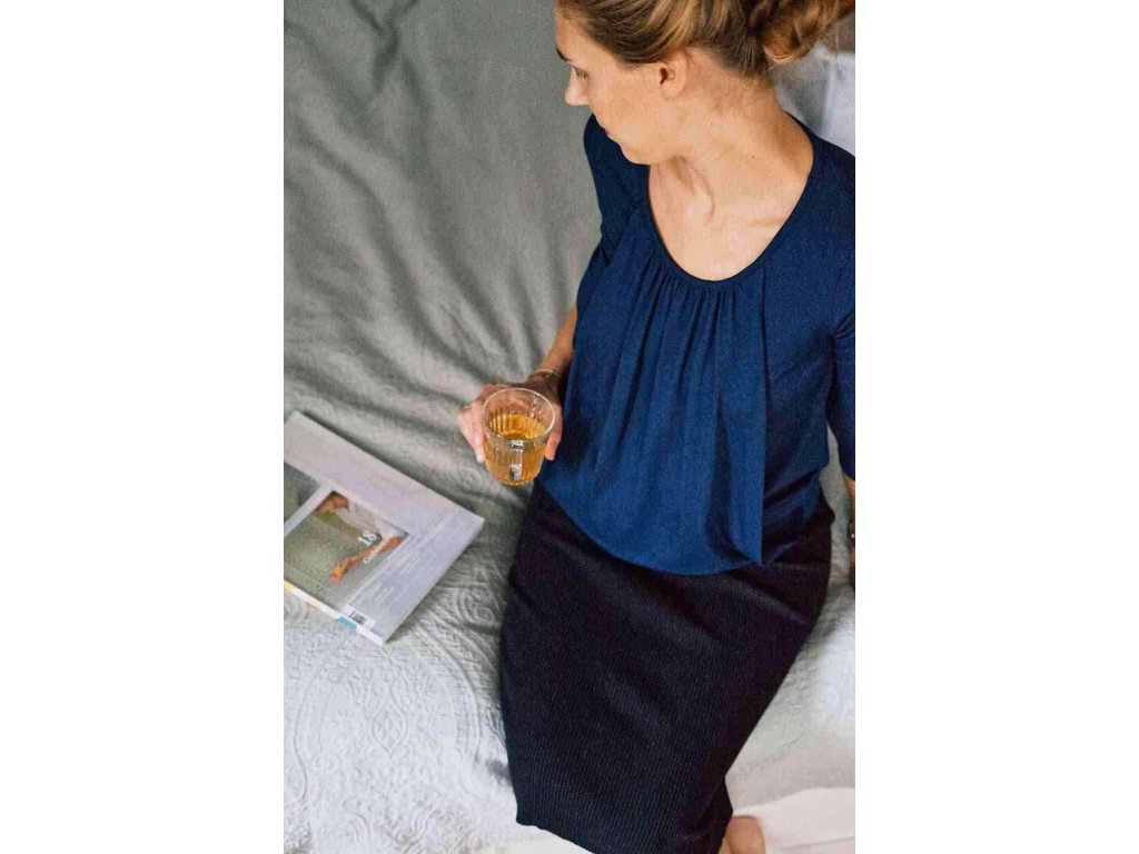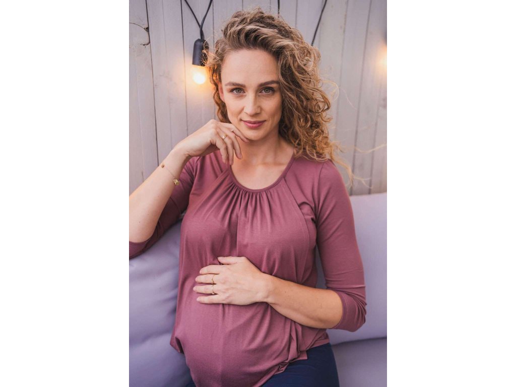 Tehotenské a dojčiace tričko Kangaroo milk & love. Tehotenské a dojčiace blúzky-tričká Kengury sú vyrobené z elastického viskózového materiálu, ktorý sa pekne prispôsobí meniacim sa tvarom tela v tehotenstve aj po ňom. Kvalitné viskózové vlákna sa nedeformujú, vďaka tomu blúzka nestráca svoj tvar a po pôrode naďalej slúži ako dojčiaca blúzka. Dômyselne skrytý otvor s ľahko zakrývajúcimi prsnými záložkami umožňuje pohodlné a diskrétne dojčenie všade tam, kde má vaše dieťatko hlad. Výstrih je zakončený ozdobným nariasením, je dostatočne dlhé, aby vám zakrylo chrbát a aby ste sa v tehotenstve cítili pohodlne. Tričko je ušité z najkvalitnejšej látky, ktorá prešla prísnymi testami Oeko-Tex Standard 100 – vďaka nim sú tehotenské a dojčiace blúzky jemné na dotyk a bezpečné pre matku aj dieťa. Pri výbere veľkosti dojčiacej/tehotenskej blúzky sa riaďte veľkosťou, ktorú práve nosíte. Oblečenie je z elastického materiálu a krásne sa prispôsobí postave. Je to veľká veľkosť, takže pokiaľ váhate medzi dvoma veľkosťami – zvoľte tú menšiu. Rozmerovú tabuľku nájdete ako poslednú fotografiu. Zloženie: 92% viskóza, 8% elastan. Dĺžka rukávov 7/8.Dodatočné parametre