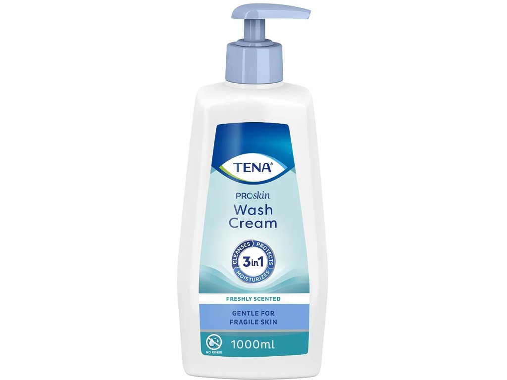 Táto jemná alternatíva mydla a vody čistí, chráni a hydratuje krehkú staršiu pokožku. Praktické zloženie bez potreby oplachovať vodou. Umývací krém TENA Wash Cream je možné používať pri výmene inkontinenčných pomôcok na umývanie celého tela. Ošetrujúci krém je dermatologicky testovaný, pomáha udržovať prirodzené pH pokožky a má sviežu vôňu, ktorá pomáha s kontrolou zápachu.