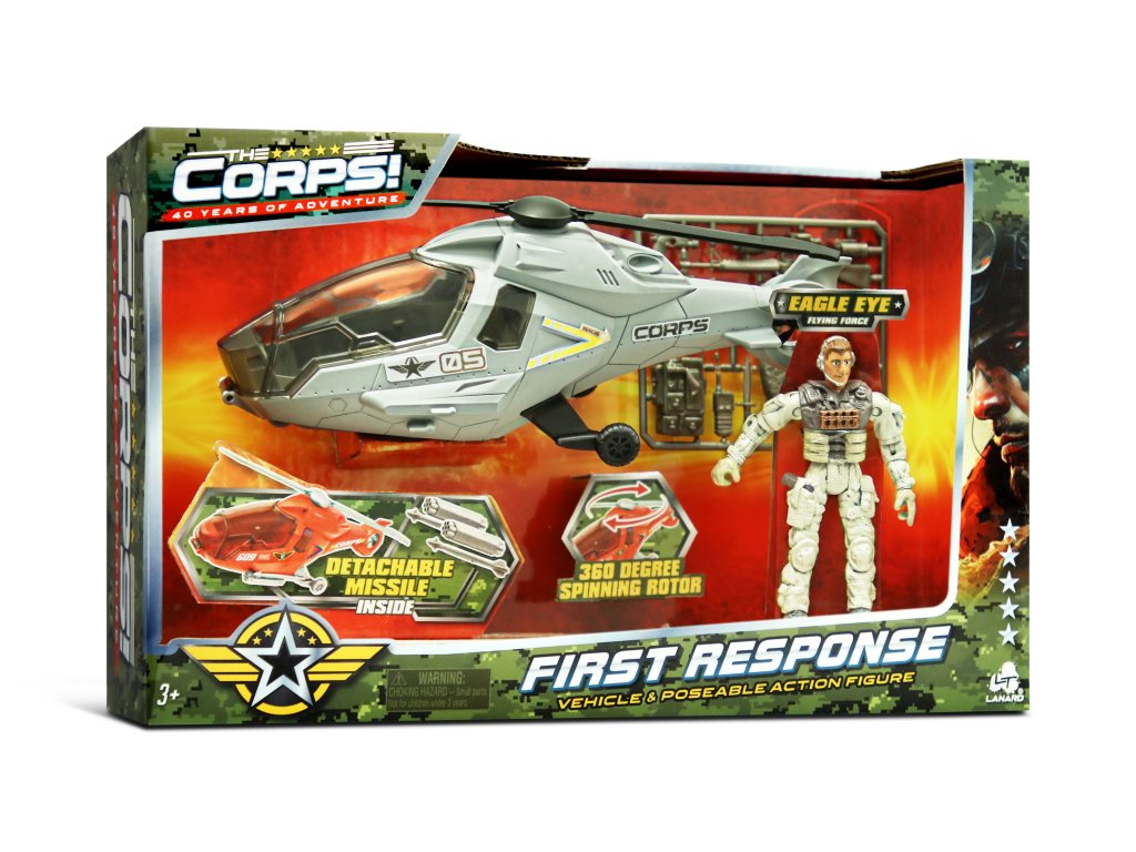 The Corps! Útočná jednotka set. Balenie obsahuje 1 vojenský útočný stroj a 1 figúrku vojaka. Veľkosť stroja 22 cm. Veľkosť figúrky 10,5 cm. 3 varianty - tank, helikoptéra, stíhačka.Dodatočné parametre