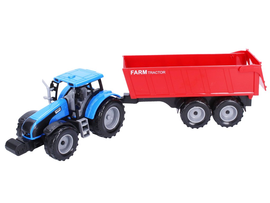 Traktor s vlečkou. Dĺžka 42 cm. Zadná časť vlečky je otváracia. Pohon na zotrvačník.Dodatočné parametre