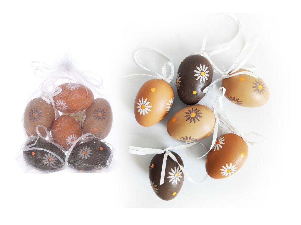 Vajíčko dekoračné plastové maľované o veľkosti 6 cm. 6ks v organza sáčku. Cena za jeden organza sáčok.Dodatočné parametre