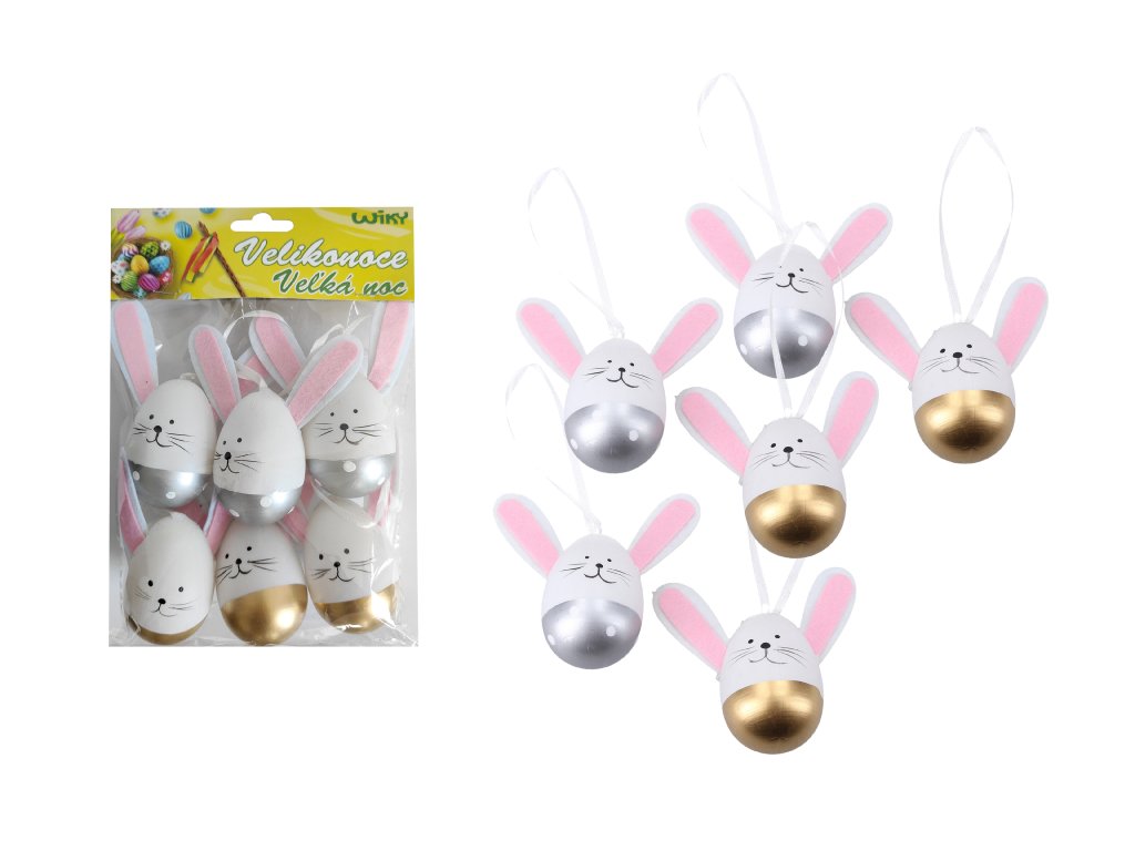 Vajíčko dekoračné plastové maľované na zavesenie 6 cm, 6ks