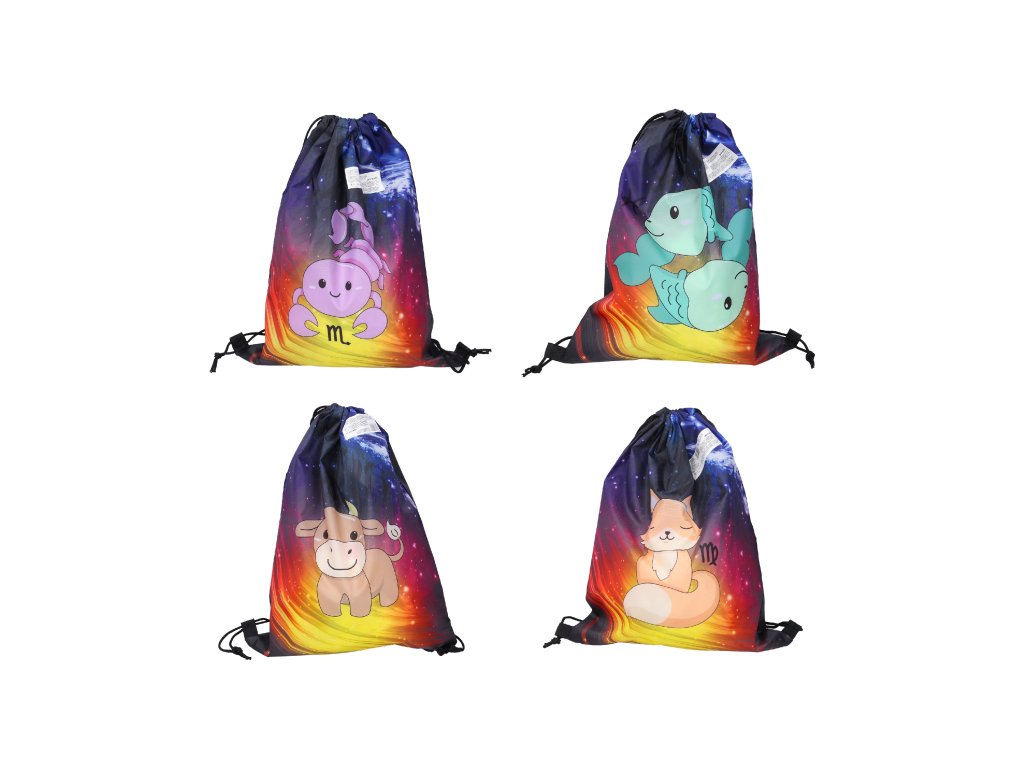 Vak na chrbát / vrecko na prezuvky o veľkosti 34x42 cm Zodiac. 12 znamení zverokruhu. 12 znamení v jednom sáčku.Dodatočné parametre
