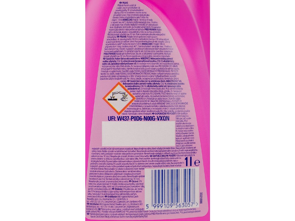 Pranie v práčke: Na odolné škvrny pridajte k normálnemu praciemu prípravku dávku 100 ml tekutého Vanishe Oxi Action. Perte ako obvykle. Namáčanie: Do 4 litrov teplej vody (max. 40 ° C) pridajte 60 ml tekutého Vanishe. Farebná bielizeň: najdlhšie 1 hodinu. Po namočení perte ako obvykle alebo dôkladne vypláchajte. Predčistenie: Nalejte 2 ml tekutého Vanishe Oxi Action priamo na každú zo škvŕn. Nechajte pôsobiť najdlhšie 10 minút. Podľa potreby škvrnu premiešajte a potom postupujte podľa pokynov, ako prať, uvedených na odeve. Pozor: Vždy sa riaďte návodom na použitie na balení výrobku. Nepoužívajte na odevy vyžadujúce chemické čistenie. Nelejte produkt na kovové časti odevov (napr. gombíky, zipsy).