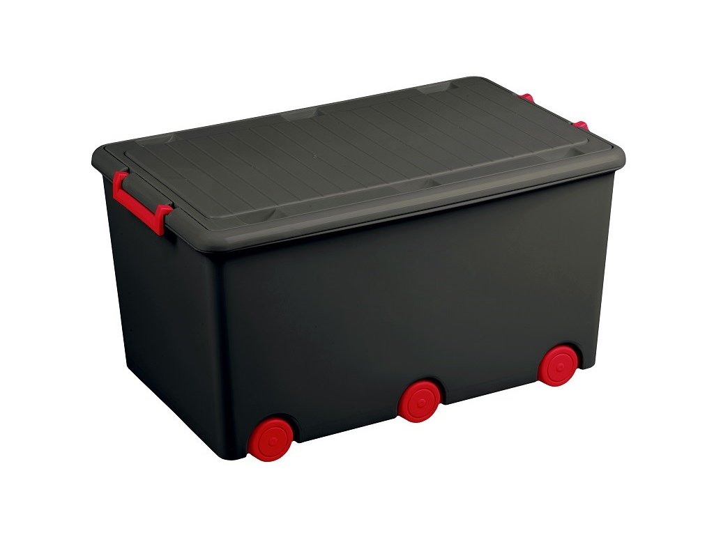 Viacúčelový box na hračky na kolieskach Tega grafitovo-červený