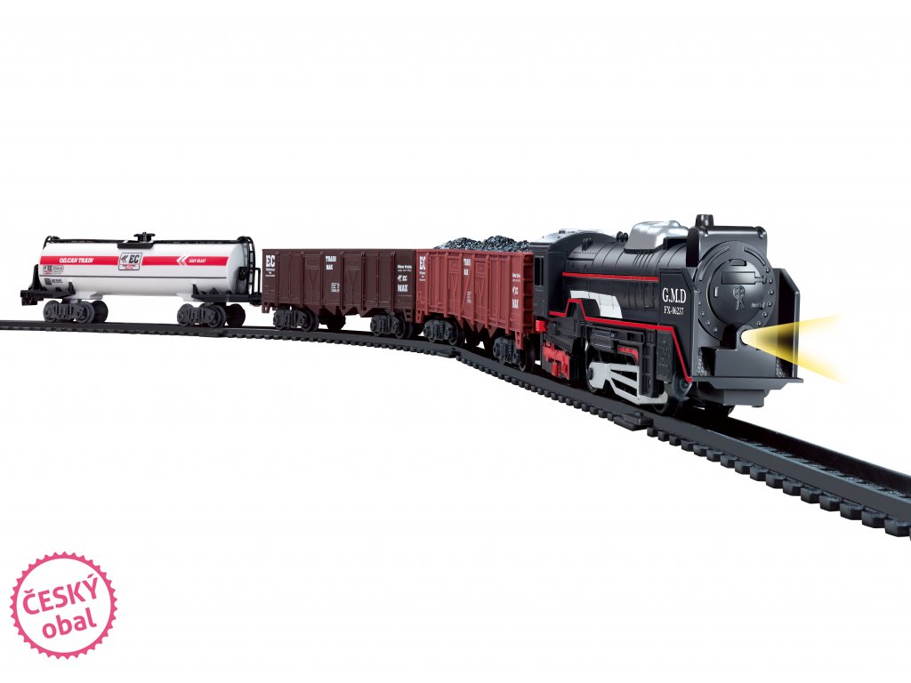 Vláčik set malý. Rozmery zloženej železnice 104x68 cm. Dĺžka trate 280 cm. Svetelné efekty. 2 x AA batérie do mašinky nie sú súčasťou.Dodatočné parametre