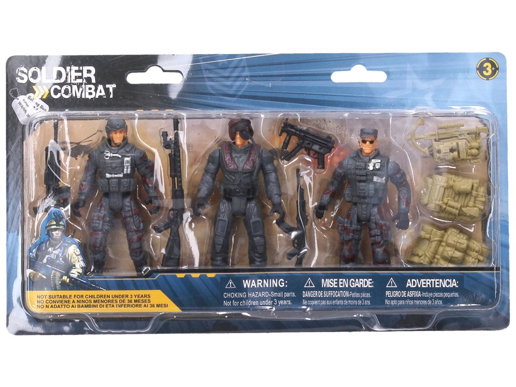 Vojaci sada figúrok 11cm a zbraní. Obsah balenia - 3 x figúrka vojaka 11 cm, 3x batoh s výstrojom, 4x zbraň.Dodatočné parametre