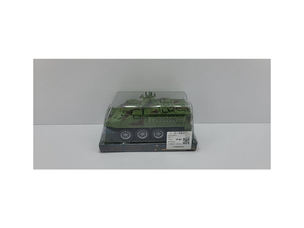 Vojenské vozidlo. Rozmery 17x9x8 cm. Na zotrvačník. 2 farebné varianty.Dodatočné parametre