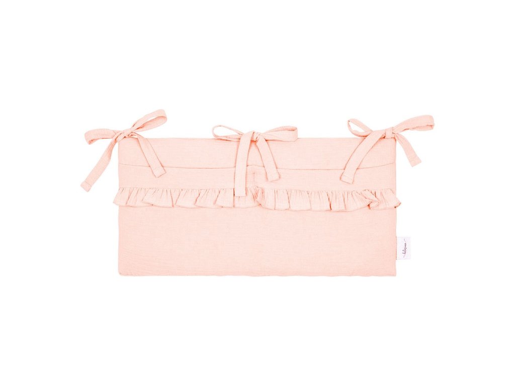 Vreckár na postieľku Belisima Mušelín. Krásny, kvalitný a praktický vreckár na postieľku s rozmermi 30x60 cm bude vašim ideálnym pomocníkom na odkladanie všetkého potrebného pre bábätko. Vďaka univerzálnym pastelovým farbám sa bude skvele hodiť do izbičky akéhokoľvek typu. Zloženie: 100% bavlna. Výplň: antialergické vlákno-100% polyester.Charakteristika: