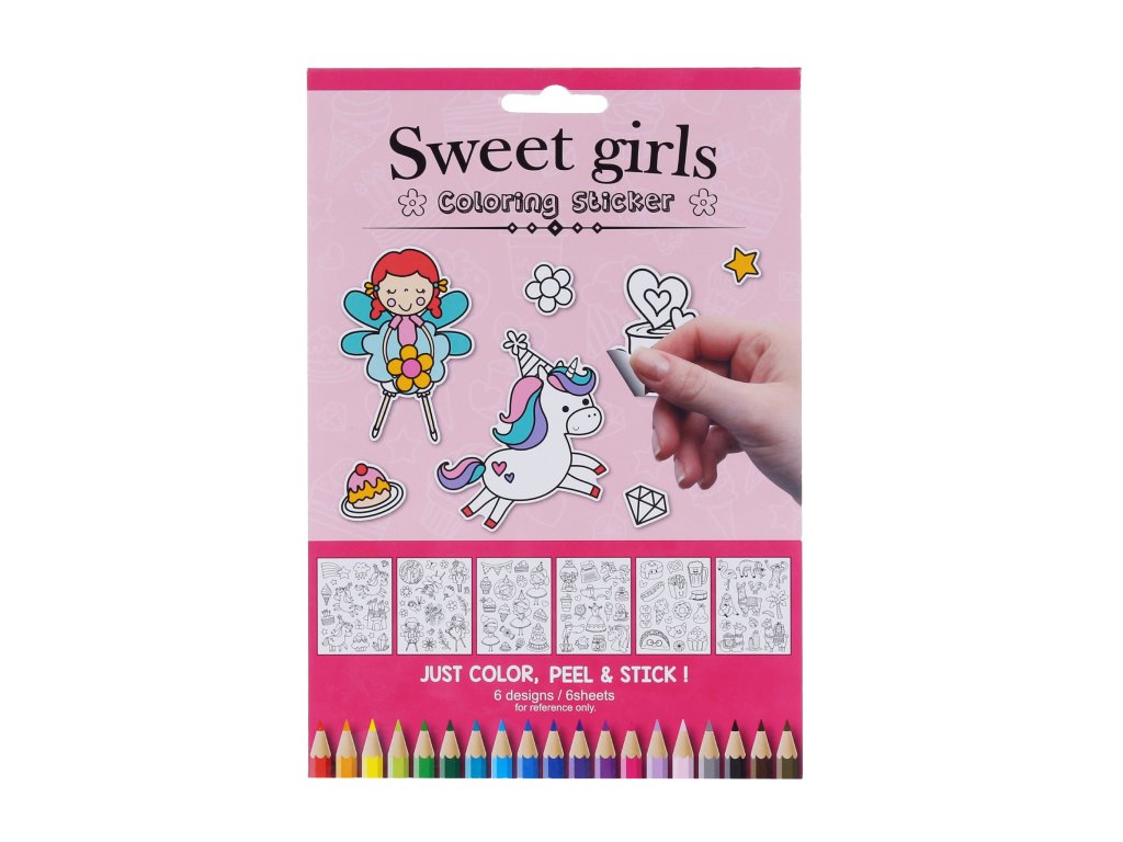 Vyfarbovacie nálepky 6 listov - Pre dievčatá