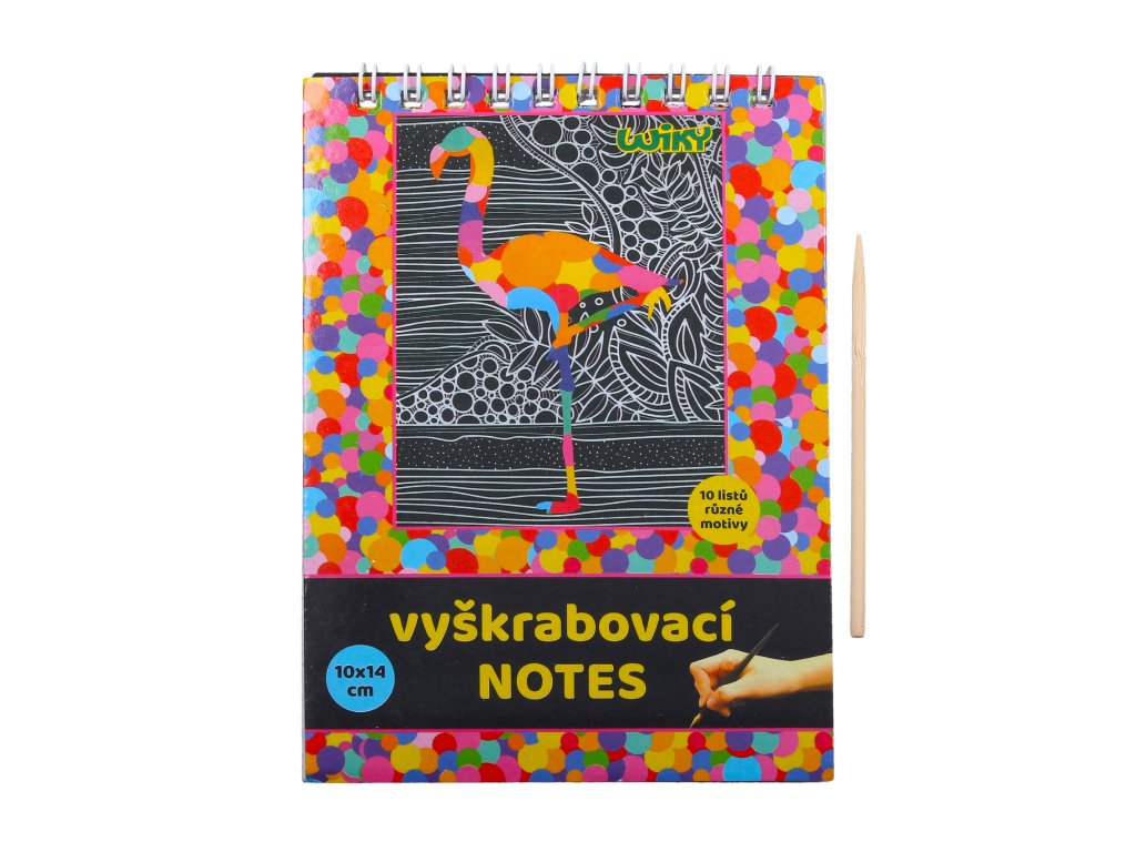 Kreatívne sa vyvádzajte na vyškrabávacom notese, ktorý má rozmery 10x14 cm. Na jednotlivých listoch, môžete pomocou vyškrabávacieho pera vytvárať rôzne pestrofarebné obrázky. Odporúčaný vek: od 3 rokovDodatočné parametre