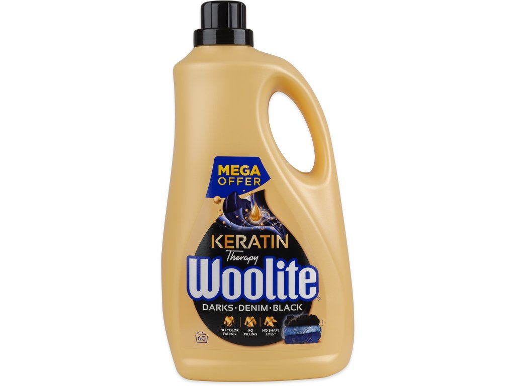 Woolite Keratín Therapy Darks Denim Black je vysoko účinný tekutý prací gél na denim, čierne a tmavé prádlo , ktorý nielen účinne čistí , ale tiež chráni farby na oblečenie pred vyblednutím. Vďaka obsahu keratínu pomáha chrániť textilné vlákna , dodáva im jemnosť, chráni pred žmolkovaním a látku nekrčí.