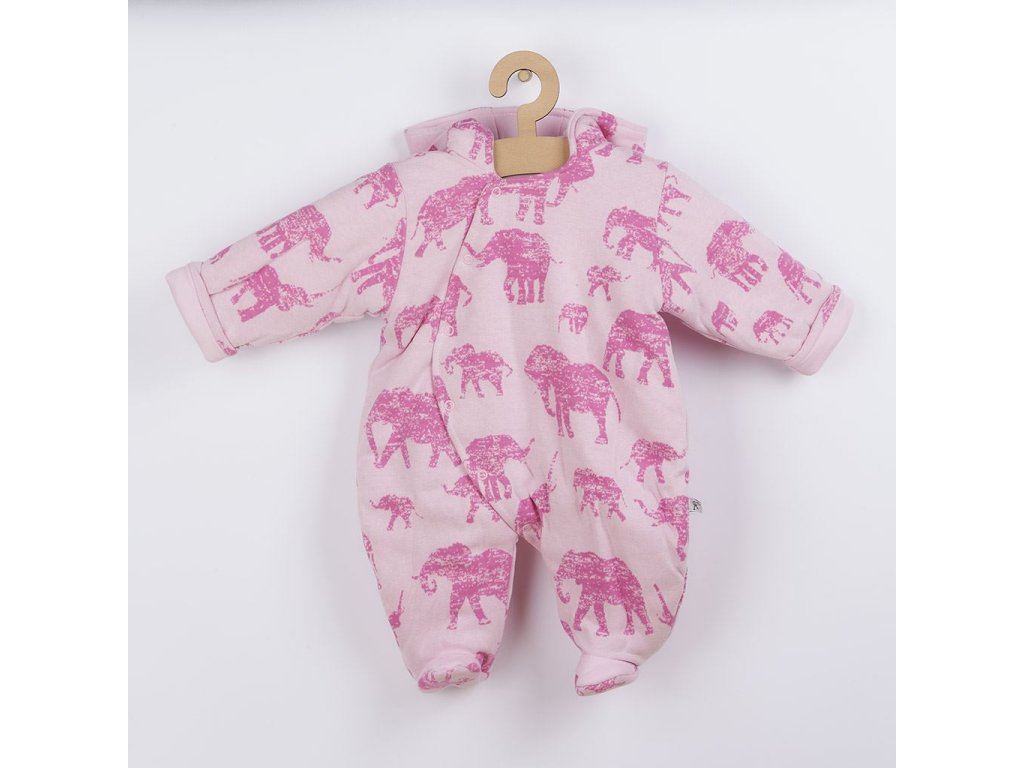 Zateplená dojčenská kombinéza s kapucňou Baby Service Slony ružová