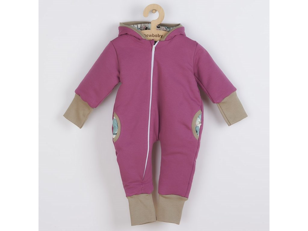 Zateplený jarný overal s kapucňou New Baby Spring purple-pink